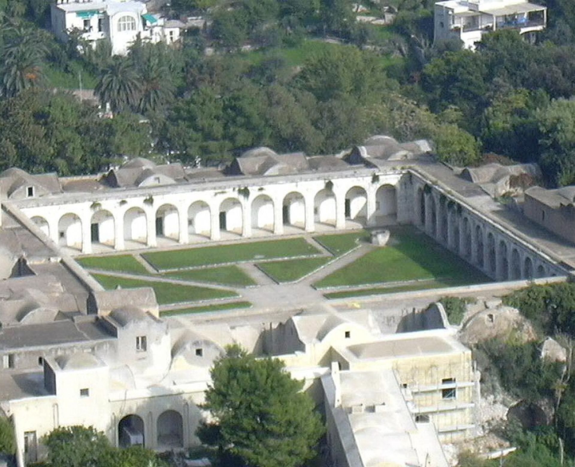 Fondata tra il 1371 ed il 1374 da Giacomo Arcucci, Gran Camerario e segretario della regina Giovanna I d’Angiò, protettrice e benefattrice del monastero, il complesso fu incendiato a seguito delle incursioni del corsaro Dragut (1553). Altri saccheggi seguirono nel 1558 e nel 1563. Nel 1808, in seguito al decreto di Giuseppe Bonaparte, che prevedeva la soppressione dei conventi e l’incameramento dei loro beni, i Certosini abbandonarono il cenobio che, nel 1815, fu adattato a bagno penale, poi divenne ospizio per invalidi e dopo il 1860 fu sede di una compagnia di disciplina.