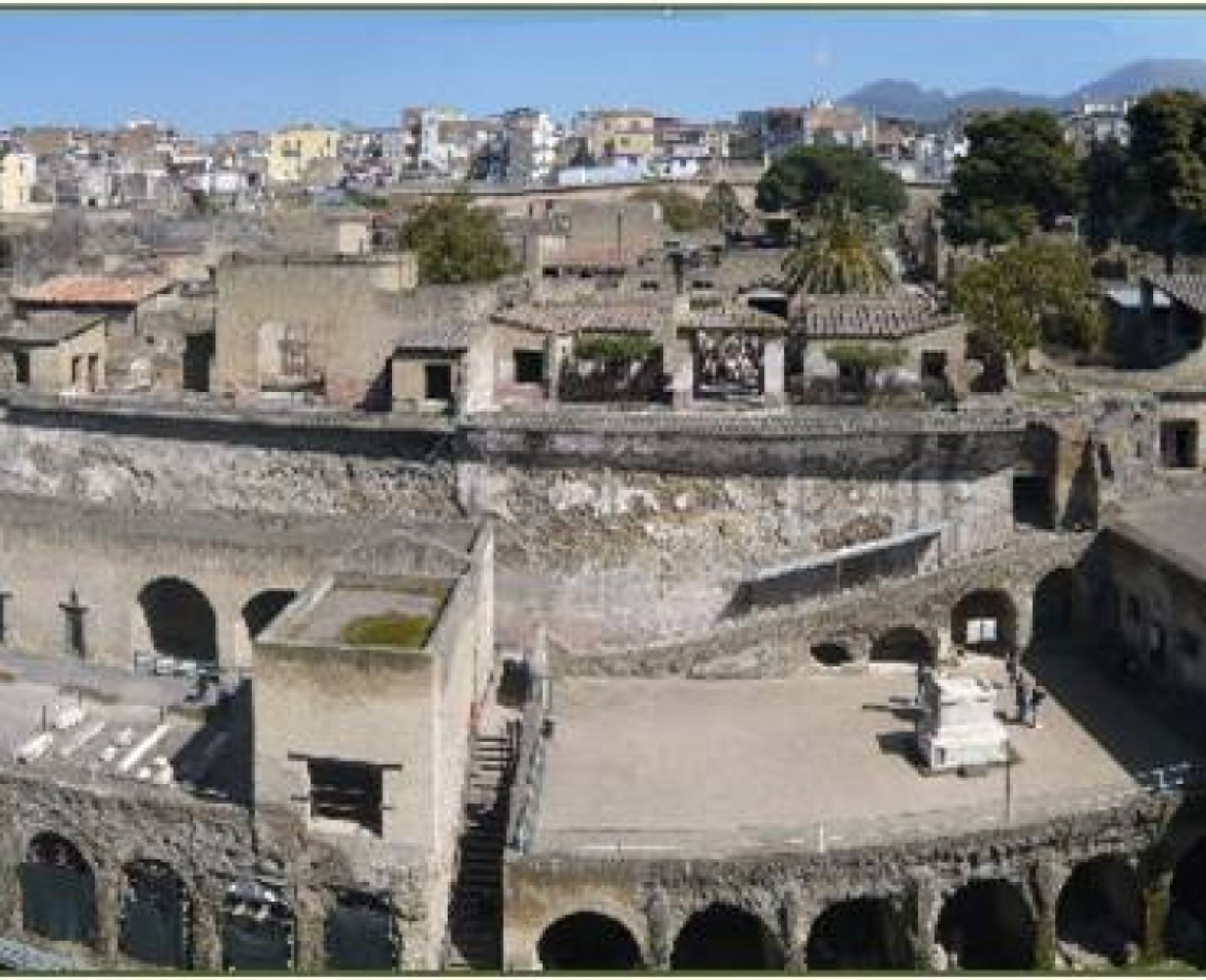 Situata su un pianoro vulcanico, a picco sul mare, Ercolano, come le altre città vesuviane di Pompei, Oplonti e Stabia , è stata coperta dall’eruzione del Vesuvio del 79 d.C.. Fango, lapilli e cenere, la seppellirono fino a raggiungere uno spessore di ventitre metri. La città fu riportata alla luce durante gli scavi condotti dai Borbone, a partire da un ritrovamento casuale effettuato in corrispondenza del teatro antico di Ercolano.